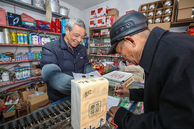 日前,柯橋區(qū)楊汛橋鎮(zhèn)園里湖居委會居民孔大爺來到附近的便利店,用平日生活垃圾分類積攢下來的積分總成成生活用品。