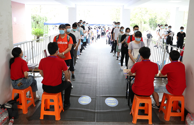 當三位一體測試遇上疫情防控,除了緊張的考試氣氛外,學校大力加強了防控措施。學校利用隔離設(shè)施專門開辟了候考與考試場地,實行單向通行,安排了工作人員和志愿者為考生服務?忌谶M入校門時都要檢查健康表和測量體溫,進?诤涂荚噮^(qū)域都安排了經(jīng)驗豐富的防控醫(yī)生處理發(fā)熱考生、體溫異常者復檢等特殊情況。