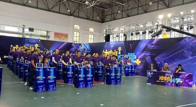 “沖刺科學(xué)+,共創(chuàng)新未來!”響亮的集體口號(hào)燃起競(jìng)賽氣氛。比賽分為四個(gè)環(huán)節(jié),前兩輪“爭(zhēng)分奪秒”、“初露鋒芒”之后,即按照分?jǐn)?shù)排名淘汰一半家庭,角逐非常激烈。