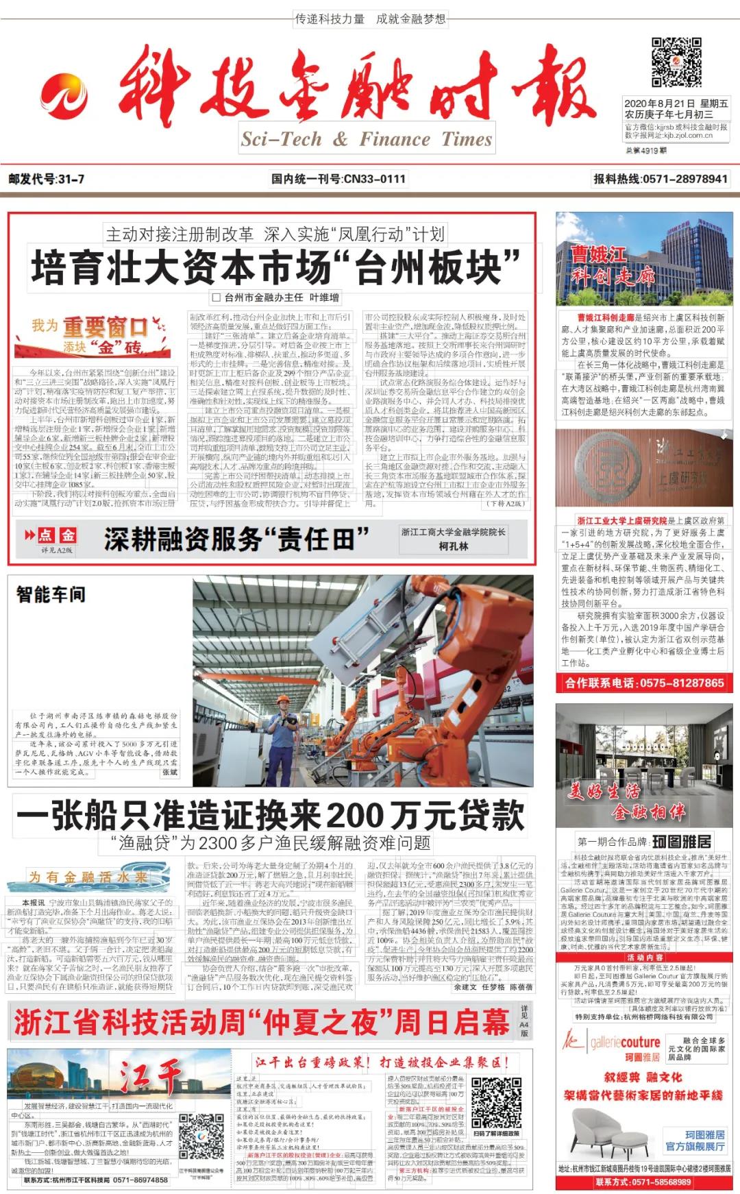 近年來,臺州市增強“窗口擔當”,以對接科創(chuàng)板改革紅利為重點,全面啟動實施“鳳凰行動”計劃2.0版本。聚焦于金融供給側(cè)結(jié)構(gòu)性改革的關(guān)鍵環(huán)節(jié),臺州市推出清單式精準服務(wù)、項目化平臺建設(shè)、多維度政策支持等創(chuàng)新性改革舉措,助力形成“金字塔型”上市梯隊,壯大資本市場“臺州板塊”。