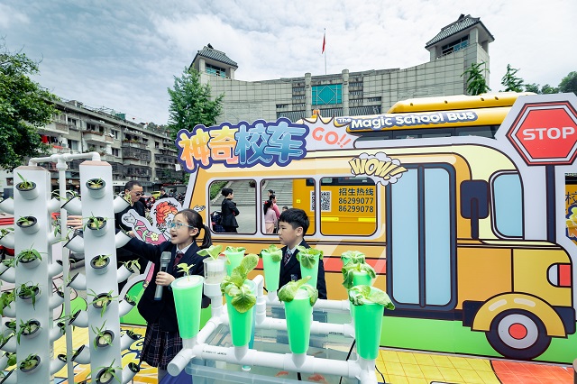 在實驗展區(qū)一輛現(xiàn)實版的“神奇校車”,引起了全場觀眾的高度關(guān)注,由溫州森馬協(xié)和國際學(xué)校學(xué)生趙羽希、黃柯皓領(lǐng)銜的“神奇校車”家庭實驗室,駛進了展區(qū),給大家展示了植物氣霧種植、植物種子發(fā)芽、潮汐種植等神奇的科學(xué)實驗。