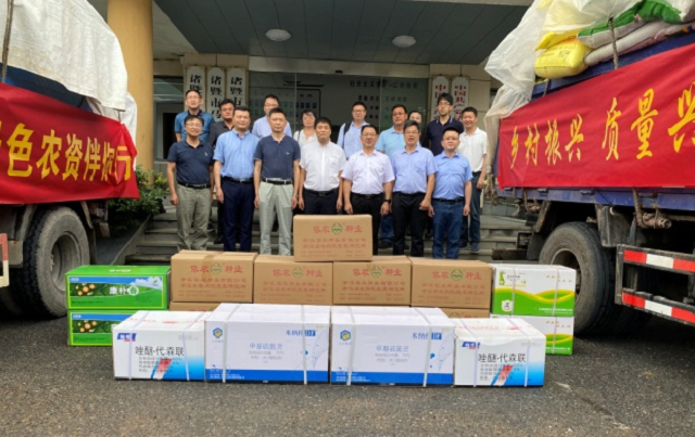 6月18日,由各單位籌集的科技救災(zāi)團(tuán)隊(duì)和首批捐贈(zèng)物資抵達(dá)諸暨市馬劍鎮(zhèn),啟動(dòng)助力諸暨災(zāi)后農(nóng)業(yè)生產(chǎn)恢復(fù)活動(dòng),浙江省農(nóng)業(yè)科學(xué)院副院長(zhǎng)戚行江、人事部部長(zhǎng)戴杰、科研與合作部副部長(zhǎng)徐俊鋒,浙江省供銷社業(yè)務(wù)處處長(zhǎng)徐旭、浙農(nóng)股份陳志浩、諸暨市副市長(zhǎng)樓闖、諸暨市科技局局長(zhǎng)蔣宏偉等有關(guān)領(lǐng)導(dǎo)及葡萄、水稻、蔬菜、質(zhì)量安全等學(xué)科專家、農(nóng)資企業(yè)代表、受災(zāi)鄉(xiāng)鎮(zhèn)代表等40余人參加。