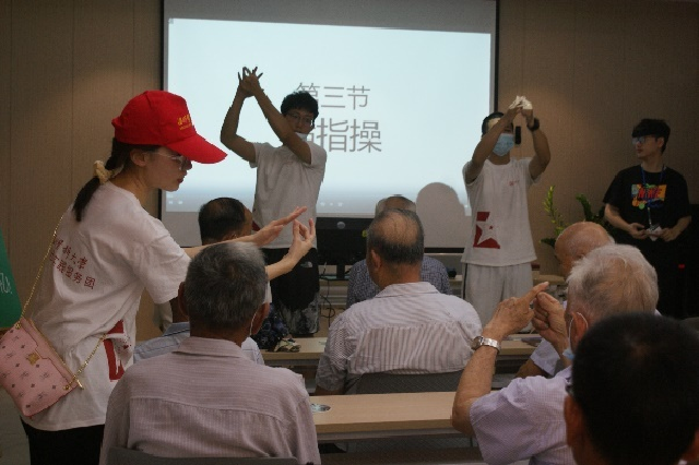 為了豐富老年人的日常生活,關(guān)懷阿爾茲海默老人,宣傳科普阿爾茨海默癥,實(shí)踐團(tuán)在今夏的活動(dòng)中首次使用溫州話版科普短片,幫助普通話語(yǔ)言能力不強(qiáng)的老人們加深對(duì)阿爾茲海默的了解。除了血糖血壓常規(guī)測(cè)量、阿爾茲海默癥初篩,他們還組織豐富的活動(dòng)為老人帶去關(guān)懷與歡樂。他們和老人共栽多肉、一同插花剪窗花……還教授老人預(yù)防阿爾茲海默癥的手指操教學(xué),修身養(yǎng)氣的八段錦練習(xí),更有新潮的廣場(chǎng)舞。關(guān)愛老人的身心健康,實(shí)踐團(tuán)一直在前行。