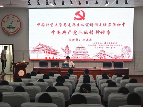 “一百年前,從上海的石庫門,到嘉興的南湖,十幾個平均年齡28歲的青年,在一葉小船上醞釀著‘開天辟地的大事變’……”近日,在縉云縣東渡中學(xué),來自中國計量大學(xué)青馬宣講團的王浩杰深入淺出地為同學(xué)們闡述了中國共產(chǎn)黨人精神譜系背后的紅色故事。