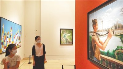 圖為觀眾在欣賞藝術作品。