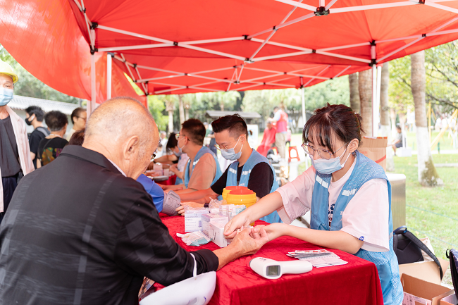 活動(dòng)現(xiàn)場,團(tuán)隊(duì)成員們通過科普宣傳阿爾茨海默病科學(xué)知識,讓更多民眾關(guān)注阿爾茨海默病,做到早預(yù)防、早篩查、早就診。還通過手指操,面具制作等益智游戲的互動(dòng),增強(qiáng)中老年人群的社區(qū)社交能力。溫州醫(yī)科大學(xué)附屬第一醫(yī)院、溫州醫(yī)科大學(xué)附屬第二醫(yī)院醫(yī)生在現(xiàn)場為老人進(jìn)行義診、免費(fèi)健康咨詢等服務(wù)。此外,專門針對45歲及以上中老年人進(jìn)行認(rèn)知評估,并計(jì)劃對鹿城區(qū)所有百歲老人進(jìn)行免費(fèi)的體檢服務(wù)。