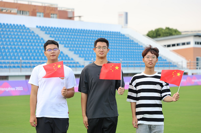 此外,量大學子們還親手折出500個五角星,粘貼于“相約計量、共迎國慶”主題噴繪墻上,五顆黃色星星在紅色星星為底的“中國地圖墻”上格外閃耀!耙郧啻褐摇^斗之我,為民族復興鋪路架橋,為祖國富強添磚加瓦……”同學們齊聲喊出“強國有我”的錚錚誓言,聲音響徹校園上空。