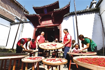 近日,建德市壽昌鎮(zhèn)黨員干部與志愿者一起,在烏石村用紅辣椒、黃豆、稻谷等拼出“喜迎二十大”“曬秋”“豐收”等字樣,用竹匾曬在古建筑紫薇第門(mén)口,表達(dá)了農(nóng)民豐收的喜悅,以及對(duì)即將召開(kāi)黨的二十大的美好祝愿與期盼。