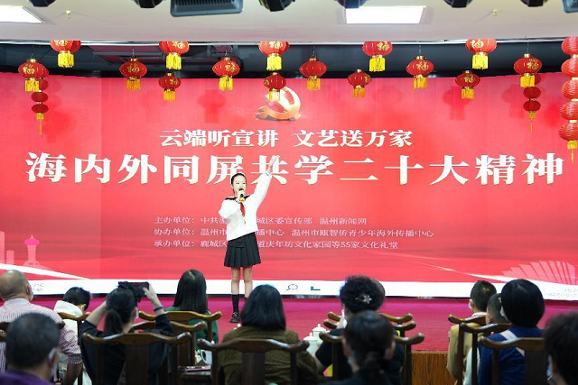 10月23日下午,由中共溫州市鹿城區(qū)委宣傳部、溫州新聞網(wǎng)主辦,溫州市海外傳播中心、溫州市甌智僑青少年海外傳播中心協(xié)辦,鹿城區(qū)松臺街道慶年坊文化家園等55家文化禮堂承辦的“云端聽宣講文藝送萬家——海內外同屏共學二十大精神”宣講活動在鹿城慶年坊文化家園舉行。