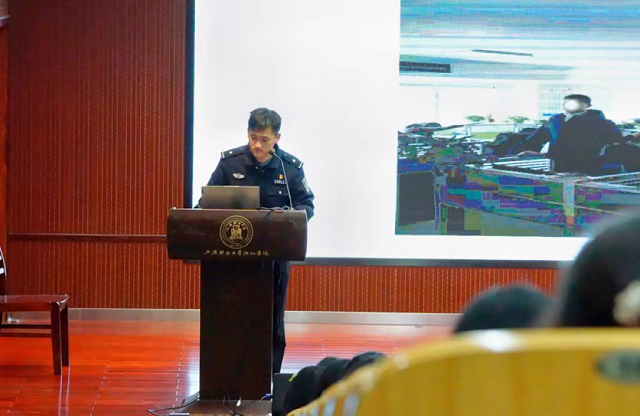 施警官首先向同學(xué)們科普了電信網(wǎng)絡(luò)詐騙的含義,以及其特點與危害。隨后通過詳細的圖表羅列,施警官向同學(xué)們展示了當(dāng)下嚴(yán)峻的電信詐騙犯罪形勢。通過真實電信詐騙案件的分享,施警官給同學(xué)們普及了常見的電信詐騙手段。同時為了加深大家的印象,施警官還對詐騙分子的行騙步驟進行深度剖析,將詐騙分子拙劣的騙術(shù)一步一步展現(xiàn)在同學(xué)們眼前。