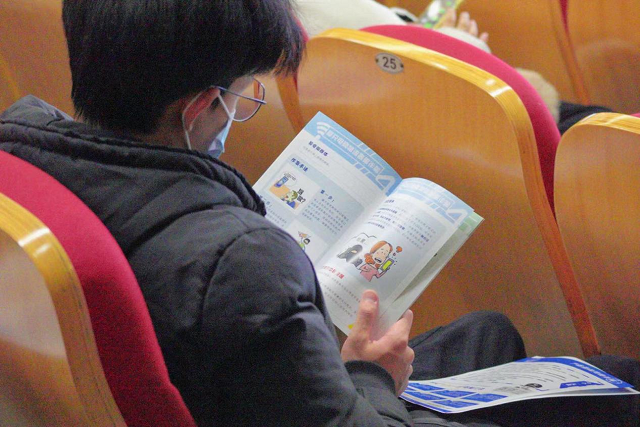 宣講會過程中,同學(xué)們頻頻點頭,認(rèn)真地翻閱防詐騙手冊,將反詐防騙知識謹(jǐn)記心中。