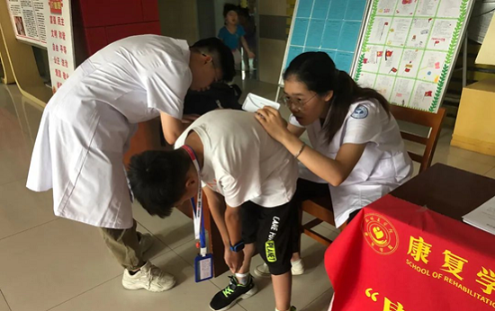 “同學(xué),你班級的座位會定時調(diào)換么?學(xué)校會按照你的身高調(diào)整課桌椅高度嗎?”日前,在杭州市余杭區(qū)瓶窯社區(qū)的黨群服務(wù)中心,來自杭州醫(yī)學(xué)院康復(fù)學(xué)院的同學(xué)們帶領(lǐng)前來參加脊柱側(cè)彎篩查公益活動的孩子和家長填寫問卷;顒臃譃橐话銠z查、前屈試驗和脊柱側(cè)彎測量尺測量、問卷調(diào)查、正脊動作教學(xué)及宣教四個步驟。這樣的活動杭醫(yī)學(xué)生從2021年起,已在杭嘉地區(qū)的中小學(xué)校、青少年活動中心以及街道社區(qū)持續(xù)開設(shè)了十幾場,惠及5000余名中小學(xué)生。