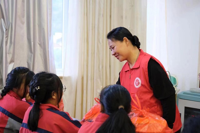 據(jù)悉,這是紅十三愛心社第九年走進(jìn)巽宅中學(xué)開展結(jié)對(duì)幫扶活動(dòng)。從2015年開始,紅十三愛心社在巽宅中學(xué)常態(tài)開展“五個(gè)一”活動(dòng),即每學(xué)年至少到他們家中走訪一次、至少與他們談心一次、至少與他們班主任聯(lián)系一次、至少與他們臨時(shí)監(jiān)護(hù)人溝通一次、至少給予他們助學(xué)金一次,為學(xué)生們健康成長(zhǎng)提供一個(gè)良好的環(huán)境,引導(dǎo)他們樹立“自信、樂觀”的心態(tài)。