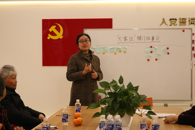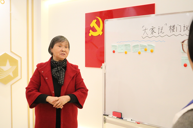 活動中,高級社會工作師、大北社區(qū)黨支部書記孫志芳首先教大家如何用開放空間的模式開設(shè)議題,并引出本次議題主要討論優(yōu)秀樓道公共空間美化補助資金使用項目。大家圍繞主題紛紛出點子,現(xiàn)場討論熱烈。