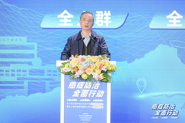 浙江省科學技術協(xié)會副主席陸錦,浙江省疾病預防控制中心黨委書記王楨、浙江省抗癌協(xié)會理事長毛偉敏出席活動并致辭,中國工程院院士、中國抗癌協(xié)會理事長樊代明視頻致辭。中國抗癌協(xié)會副理事長、浙江省腫瘤醫(yī)院黨委書記、浙江省腫瘤防治辦公室主任程向東發(fā)布最新一期的《2022浙江省腫瘤登記年報》數(shù)據(jù),浙江省腫瘤醫(yī)院黨委副書記、副院長金戈介紹建院60周年的系列活動。