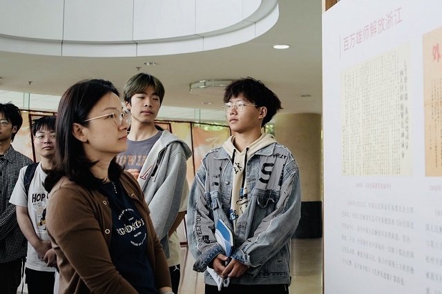 “小小紅船承載千鈞,播下了中國(guó)革命的火種,開(kāi)啟了中國(guó)共產(chǎn)黨的跨世紀(jì)航程……”“中國(guó)共產(chǎn)黨浙南紅軍第十三軍第三團(tuán)有各式槍支九百多支,土炮多門(mén),手提機(jī)槍四挺,是紅十三軍三個(gè)團(tuán)中武器最精良的一個(gè)團(tuán)……”跟隨中國(guó)計(jì)量大學(xué)“90、00”理論宣講團(tuán)的講解,一件件革命文物背后的歷史故事,躍然浮現(xiàn)在現(xiàn)場(chǎng)師生的眼前。5月8日,“紅船從‘浙’里起航——‘革命文物進(jìn)高!笮脱舱埂弊哌M(jìn)中國(guó)計(jì)量大學(xué),學(xué)!90、00”理論宣講團(tuán)生動(dòng)講述革命文物背后的故事,讓在場(chǎng)的100余名師生“沉浸式”感悟崢嶸歲月,感受革命精神和紅色文化的魅力,將生動(dòng)的思政課搬到展覽現(xiàn)場(chǎng)。