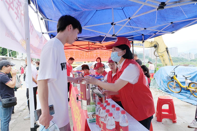 十年磨一劍,今朝試霜刃。今年溫州永嘉參加夏季高考統(tǒng)一考試共6475名考生,全縣設6個考點。6月7日,為助力考生乘風破浪、金榜題名,溫州電力紅十三愛心社在永嘉縣職業(yè)中學設置“愛心助考服務點”,護航高考學子圓夢路。