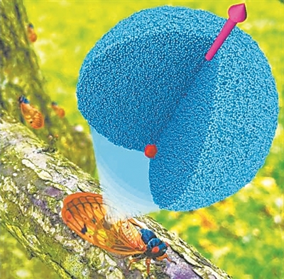 結(jié)果表明,當(dāng)水滴的力大于將污染物固定在表面的力時(shí),污染物會(huì)被液滴吸收,液滴從蟬的翅膀上滾落或跳下;而在其他情況下,大量液滴合并在一起產(chǎn)生的提升力會(huì)將污染物從翅膀上彈射出來(lái),形成不可思議的液滴形狀,類似于熱氣球。