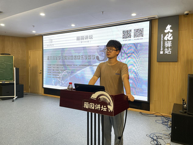 “我們經(jīng)常會(huì)看到這類現(xiàn)象,一些數(shù)學(xué)還不錯(cuò)的學(xué)生進(jìn)了中學(xué)后,逐漸喪失了對(duì)數(shù)學(xué)的興趣,甚至厭惡數(shù)學(xué)。究其原因,很大一部分在于隨著考試難度不斷加大,導(dǎo)致不少學(xué)生因考試反復(fù)失利而產(chǎn)生挫敗感。對(duì)此,我將與同學(xué)們一起探討如何保持對(duì)數(shù)學(xué)的興趣以及克服對(duì)數(shù)學(xué)的恐懼……”7月2日,在溫州市圖書館舉行的第1348期籀園講壇上,來自溫大數(shù)理學(xué)院的莊子游同學(xué),面向中學(xué)生及其家長悉心分享自己的學(xué)習(xí)體會(huì),吸引線上線下近萬人次參與觀看,產(chǎn)生了積極的社會(huì)反響。