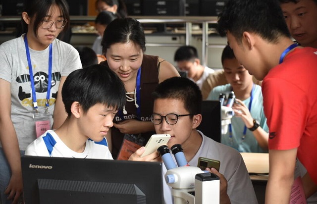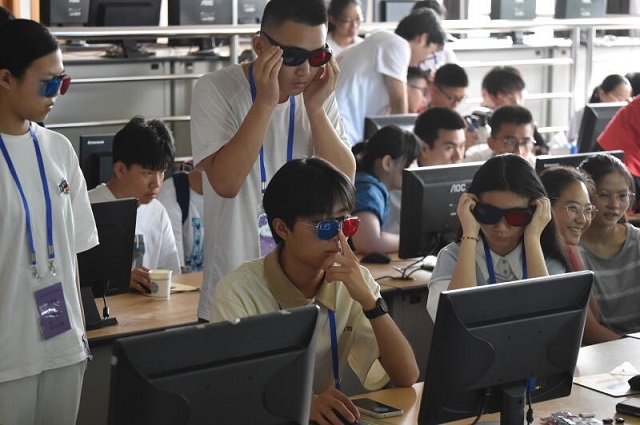 2023年7月9日,參加光學夏令營的中學生在浙江大學感受光電學科的魅力。極端光學技術(shù)與儀器全國重點實驗室等單位主辦的免費夏令營回歸線下后,推出了“手機物理工坊”“魔幻條紋”“從微觀處見世界”“三維全息投影”“神奇的偏振光”等課程,吸引了全國各地對光電科技著迷的高中生,營員中半數(shù)以上來自浙江省外。(記者 潘海松)