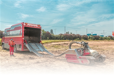 當(dāng)內(nèi)澇災(zāi)害發(fā)生時,母車?吭诳拷鼉(nèi)澇區(qū)域的安全位置,隨后釋放“子車”下水進(jìn)行作業(yè)。工作人員可以遠(yuǎn)程遙控“子車”,其最遠(yuǎn)可以在距離“母車”近百米的位置開展遠(yuǎn)程作業(yè)。由于身形小巧,“子車”可以實(shí)現(xiàn)全地形移動,能夠深入到人員和大型車輛無法到達(dá)的受災(zāi)區(qū)域,例如城市中常見的地下室、地下車庫、地下商場等,實(shí)現(xiàn)安全、高效排澇救災(zāi)。