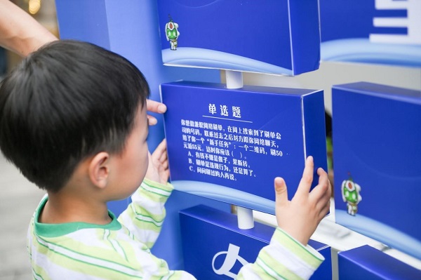 在活動現(xiàn)場的另一邊,“反詐”游戲和有獎競答吸引了現(xiàn)場許多市民前來參與,贏取各類精美的“反詐好物”!皭燮床艜A”趣味拼圖、“不‘童’凡響”知識問答、“反詐‘童’行”手繪團扇等有趣的反詐活動和小獎品,讓小朋友們在愉悅的游戲中牢牢掌握反詐知識。