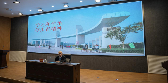 當(dāng)天還舉行了溫籍?dāng)?shù)學(xué)家精神宣講報告會。作為蘇步青先生的學(xué)生代表,華宣積教授作題為《學(xué)習(xí)和傳承蘇步青精神》的宣講報告,從蘇老生平、學(xué)術(shù)貢獻、教書育人等方面,全面展現(xiàn)了蘇步青先生愛國奉獻、求實創(chuàng)新、教書育人的動人事跡。作為谷超豪先生的學(xué)生代表,陳恕行教授作題為《弘揚溫籍?dāng)?shù)學(xué)家精神:谷超豪先生感人事跡》,亦從谷老生平、學(xué)術(shù)貢獻、教書育人全面展示了谷超豪先生熱愛數(shù)學(xué)、勇攀高峰,胸懷祖國、服務(wù)人民,甘為人梯、獎勵后學(xué)的動人事跡。