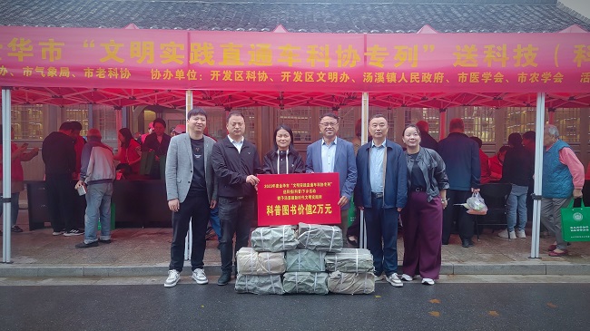 10月20日上午,金華市科協(xié)聯(lián)合市文明辦、市氣象局、市老科協(xié)、市醫(yī)學(xué)會(huì)、市農(nóng)學(xué)會(huì)和金華開發(fā)區(qū)文明辦、科協(xié)等單位一行40余人來到金華開發(fā)區(qū)湯溪鎮(zhèn)新時(shí)代文明實(shí)踐所,開展“文明實(shí)踐直通車科協(xié)專列”送科技(科普)下鄉(xiāng)活動(dòng)。