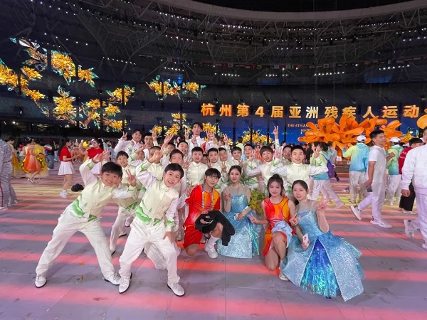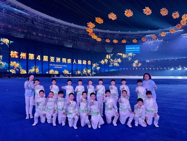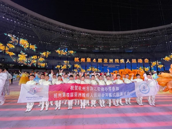 “這金桂的芬芳環(huán)繞你,是你陪我向前闖不放棄;這金桂的輝煌屬于你,是愛(ài)給我力量和勇氣……”在杭州亞殘運(yùn)會(huì)開幕式上的第三篇章《夢(mèng)閃耀》表演唱環(huán)節(jié),100多名參演孩子將美妙的歌聲、真摯的愛(ài)獻(xiàn)給全亞洲乃至全世界的人民。而這之中,有19位孩子是來(lái)自杭州市濱江實(shí)驗(yàn)小學(xué)。