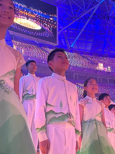 五月初,經(jīng)過層層刪選,我和18位濱實(shí)小伙伴幸運(yùn)的成為了亞殘開幕式合唱團(tuán)的成員。開始我覺得上場就這么三五分鐘,有什么難的,但進(jìn)入真正的排演后,才發(fā)覺,這任務(wù)真的是光榮且又艱巨。