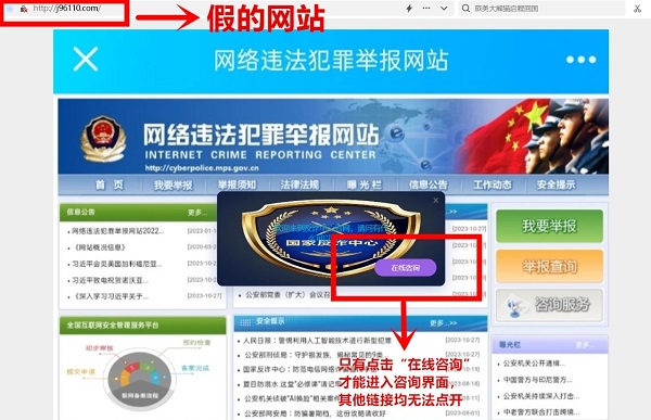 到底是什么網(wǎng)站讓吳先生深信不疑?為了一探究竟,民警打開某網(wǎng)站,屏幕上立即彈出“網(wǎng)絡違法犯罪舉報網(wǎng)站”頁面,粗粗一看,逼真的網(wǎng)頁也差點讓陳亮信以為真,細看之下,陳亮發(fā)現(xiàn)網(wǎng)頁的清晰度非常低,點擊頁面試圖查看相關鏈接內(nèi)容沒有任何反應,沒多久頁面接直接跳到報警入口,很快對方發(fā)來信息:“您好,這里是反詐騙報案官網(wǎng),請問您是否遭遇了網(wǎng)絡詐騙?”