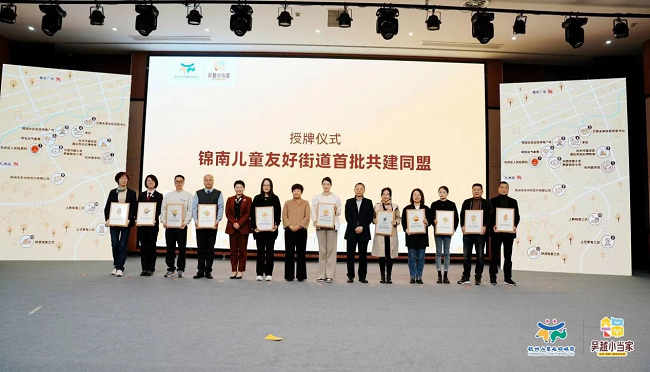 11月28日下午,由杭州市臨安區(qū)錦南街道辦事處和臨安區(qū)婦女兒童工作委員會(huì)辦公室共同主辦的臨安·錦南兒童友好街道品牌發(fā)布會(huì)在錦南街道中國(guó)傳媒大學(xué)附屬臨安小學(xué)舉辦。本次活動(dòng)主題為“一米看世界,錦南‘童’未來(lái)”,會(huì)上正式發(fā)布“吳越小當(dāng)家”兒童友好品牌。相關(guān)領(lǐng)導(dǎo)還為錦南街道首屆兒童觀察團(tuán)成員和錦南兒童友好街道首批共建同盟代表頒發(fā)了證書(shū)和授牌。