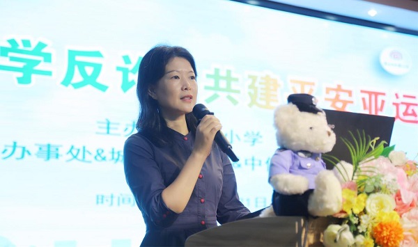 校長沈麗代表學(xué)校致歡迎辭,回瀾小學(xué)一直非常注重師生的安全教育,學(xué)校是蕭山區(qū)第一所全國消防安全宣傳教育示范學(xué)校以及全國國防安全教育示范學(xué)校。學(xué)校積極組織全體教職工安裝國家反詐中心APP,通過國旗下講話、專題講座、微信公眾號以及各類宣傳視頻等多種途徑提醒師生謹防電信網(wǎng)絡(luò)詐騙。在“三節(jié)”來臨之前,希望每一名回瀾學(xué)子都能積極提高反詐意識。