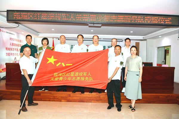 “紅星老兵志愿服務(wù)隊”,全稱“甌海區(qū)退役軍人關(guān)愛青少年志愿服務(wù)隊”。去年4月初,國家退役軍人事務(wù)部思想政治和權(quán)益維護司、國家退役軍人服務(wù)中心、中國退役軍人關(guān)愛基金會首次在全國征招遴選1000支“退役軍人關(guān)愛青少年志愿服務(wù)隊”。全國民政系統(tǒng)勞動模范黃松光、全國模范退役軍人周躍南等退役老兵積極響應(yīng)一拍即合,由8名老兵和1名黨的十九大代表、1名軍嫂加盟的10人志愿服務(wù)隊發(fā)起籌建“紅星老兵志愿服務(wù)隊”,并得到區(qū)退役軍人事務(wù)局、區(qū)關(guān)心下一代工作委員會的支持批準(zhǔn),最終申報成功入選1000支“退役軍人關(guān)愛青少年志愿服務(wù)隊”名單。6月29日,隆重舉行授旗儀式,區(qū)退役軍人事務(wù)局、區(qū)老干部局、區(qū)關(guān)工委、區(qū)慈善總會和郭溪街道黨工委主要領(lǐng)導(dǎo)親臨現(xiàn)場共同見證,當(dāng)晚還舉行“紅星向黨關(guān)愛有我”主題文藝晚會。