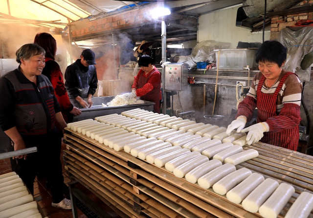 1月5日,在浙江省溫嶺市新河鎮(zhèn)肖家橋村,當(dāng)?shù)匕傩照谮s制熱氣騰騰的年糕,以喜迎新年的到來。溫嶺素有新年打年糕的習(xí)俗。年糕,寓意年年高,承載著百姓心中濃濃的鄉(xiāng)愁。(林紹禹 周學(xué)軍)