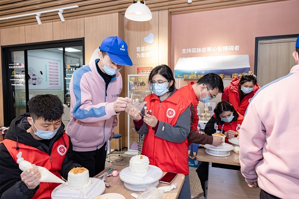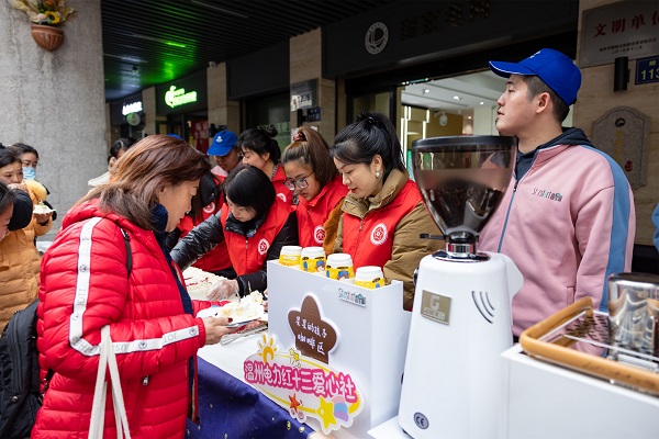 “把蛋糕帶走,把愛(ài)心留下!痹诼钩菂^(qū)蟬街,愛(ài)心社志愿者與國(guó)際志愿者、甌江小學(xué)少年愛(ài)心團(tuán)通過(guò)孤獨(dú)癥知識(shí)宣傳單發(fā)放、公益咖啡制作、愛(ài)心蛋糕試吃與義賣(mài)等,助力孤獨(dú)癥青年群體被“看見(jiàn)”、被理解、被接納,走向更大的社會(huì)空間。孤獨(dú)癥青年參與蛋糕烘培、咖啡制作和現(xiàn)場(chǎng)售賣(mài),以此幫助他們更好地與人交流、融入社會(huì)。此次活動(dòng)旨在呼吁社會(huì)上更多人積極主動(dòng)地接納他們、愛(ài)護(hù)他們,凝聚愛(ài)的力量幫助孤獨(dú)癥患者和家庭樹(shù)立信心,推進(jìn)整個(gè)社會(huì)關(guān)注及支持孤獨(dú)癥患者的康復(fù)事業(yè)。