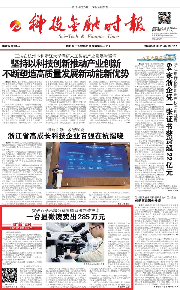 編者按》》》眼下,浙江正全力以赴“在以科技創(chuàng)新塑造發(fā)展新優(yōu)勢上走在前列”,科技金融時報全媒體推出“向‘新’躍升——發(fā)現(xiàn)‘浙’里新質(zhì)生產(chǎn)力”系列報道,深度挖掘一批在發(fā)展新質(zhì)生產(chǎn)力上敢打頭陣、勇當先鋒、爭當尖兵的典型。