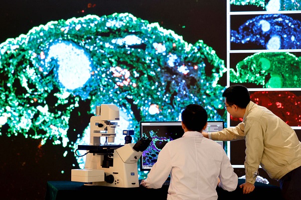 “由我們公司牽頭的‘十四五’國家重大項目科研成果NSR950,學名叫全光譜高分辨率活細胞激光共聚焦顯微鏡。它突破了百納米超分辨顯微系統(tǒng)制造技術(shù),分辨率相當于人眼極限的1100多倍!庇佬鹿鈱W總經(jīng)理毛磊說。