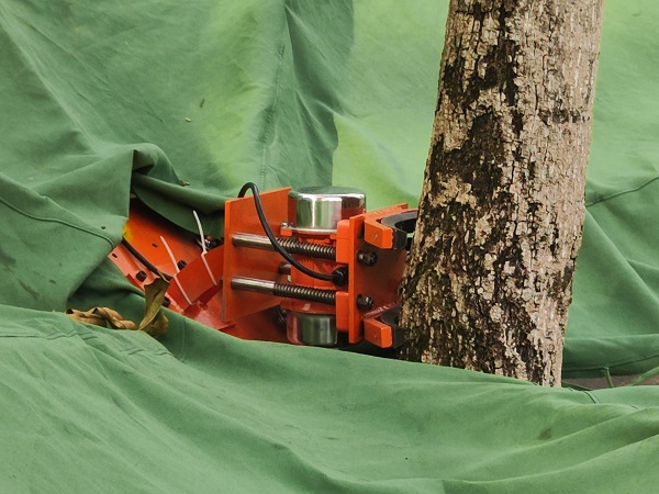 去年11月,團隊研發(fā)的折展式林果采收一體機獲得了國家發(fā)明專利,并已成功組裝生產(chǎn)。前不久,研發(fā)團隊與諸暨市千翼網(wǎng)絡(luò)科技工作室達(dá)成合作,在生產(chǎn)設(shè)備的同時,開始在寧波余姚、杭州臨安、衢州開化等地進(jìn)行實際運用。實測發(fā)現(xiàn),一臺折展式倒傘型林果收集裝置效率相當(dāng)于20個農(nóng)民,一臺采收一體機工作效率相當(dāng)于48個農(nóng)民。