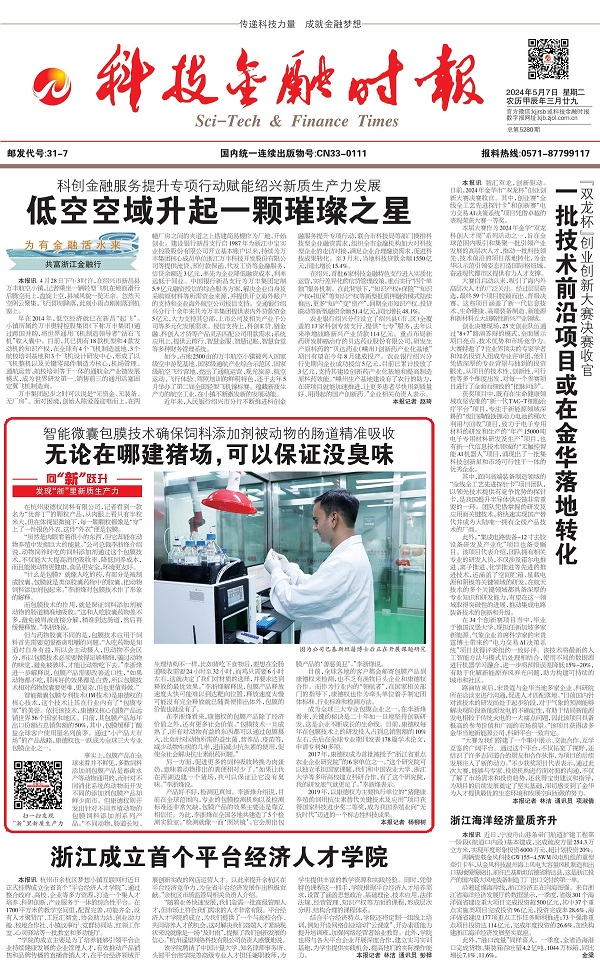 編者按》》》眼下,浙江正全力以赴“在以科技創(chuàng)新塑造發(fā)展新優(yōu)勢上走在前列”,科技金融時報全媒體推出“向‘新’躍升——發(fā)現(xiàn)‘浙’里新質(zhì)生產(chǎn)力”系列報道,深度挖掘一批在發(fā)展新質(zhì)生產(chǎn)力上敢打頭陣、勇當(dāng)先鋒、爭當(dāng)尖兵的典型。