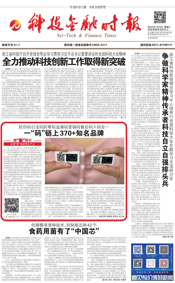 編者按》》》眼下,浙江正全力以赴“在以科技創(chuàng)新塑造發(fā)展新優(yōu)勢(shì)上走在前列”,科技金融時(shí)報(bào)全媒體推出“向‘新’躍升——發(fā)現(xiàn)‘浙’里新質(zhì)生產(chǎn)力”系列報(bào)道,深度挖掘一批在發(fā)展新質(zhì)生產(chǎn)力上敢打頭陣、勇當(dāng)先鋒、爭(zhēng)當(dāng)尖兵的典型。