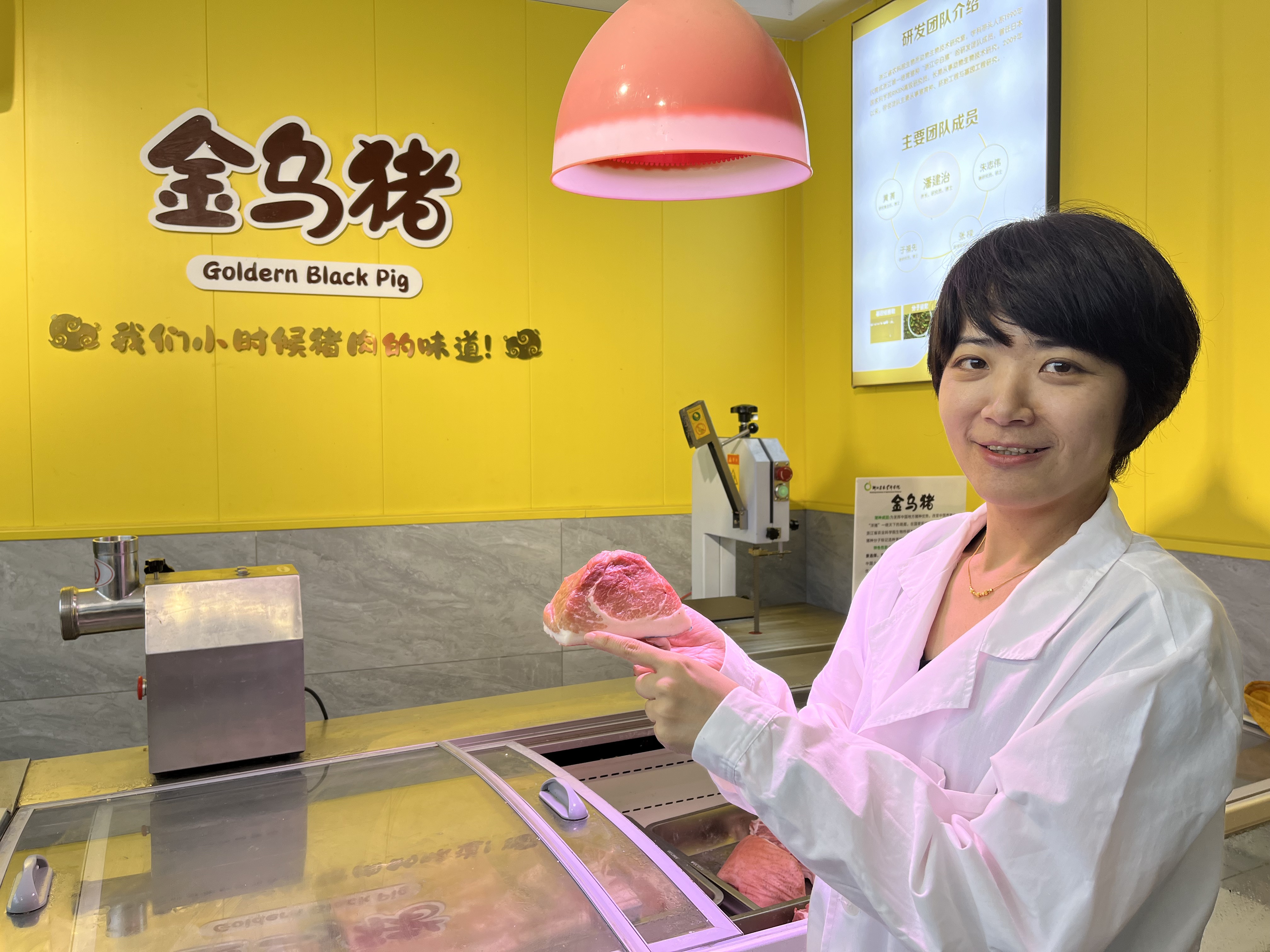 經(jīng)中試和權(quán)威機(jī)構(gòu)測定,該豬種肌內(nèi)脂肪含量高達(dá)4%以上,而洋豬品種只有1%~2%!皼]有脂肪的精肉是沒有靈魂的。”潘建治評價道。而金烏豬肉“雪花”明顯,肌內(nèi)脂肪含量豐富,吃起來更加鮮嫩多汁、易咀嚼,肌肉中天冬氨酸、肌肽、肌苷等風(fēng)味物質(zhì)含量高,充分保留了地方豬種肉質(zhì)風(fēng)味等優(yōu)勢特色。