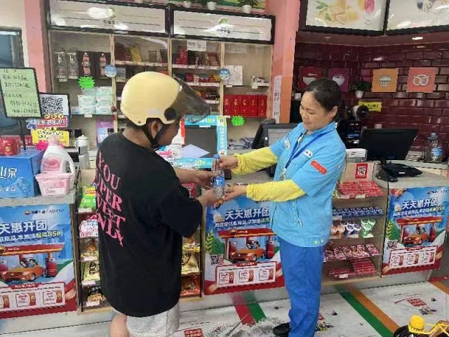 據(jù)了解,本次活動是由杭州分公司、中國建設(shè)銀行杭州分行、都市快報、光明杭州分公司聯(lián)合發(fā)起的公益活動,旨在致敬勞動者,關(guān)心關(guān)愛高溫天依然堅守一線的環(huán)衛(wèi)工人、建筑工人、外賣配送員、交警等戶外工作者!盎顒幼7月17日開始,一直到9月30日結(jié)束!被顒悠陂g,杭州分公司在下屬的紅普路、余杭、時代大道等18座加油站設(shè)置了專屬休息區(qū)域并配置了愛心冰柜,免費為戶外工作者提供好客火山泉、光明棒冰、防暑降溫藥品、充電線等多種便利。