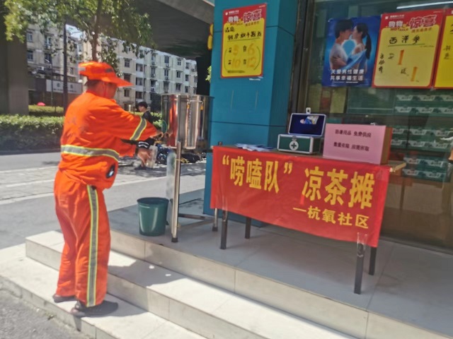 近日,杭州市拱墅區(qū)東新街道杭氧社區(qū)黨群服務(wù)中心門口設(shè)立了一個“愛心涼茶攤”,專為環(huán)衛(wèi)工人、外賣小哥、快遞員、交警等戶外工作者及過往居民提供免費的涼茶和防暑藥品。據(jù)悉,杭氧社區(qū)涼茶攤開放時間為每天11:00-16:00,將持續(xù)開放到8月底。(冷耀聞)