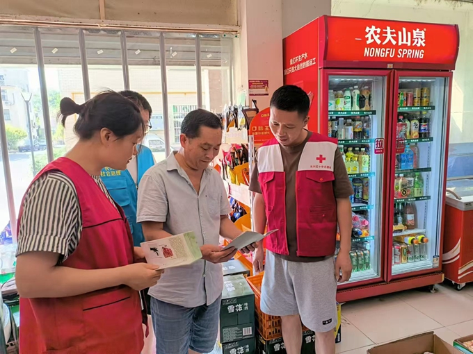 協(xié)管員用通俗易懂的語言向村民介紹食品安全小知識,引導(dǎo)村民科學(xué)合理、健康飲食。與此同時,協(xié)管員到轄區(qū)內(nèi)的餐飲店、副食店等經(jīng)營場所,通過發(fā)放宣傳折頁、宣傳手冊等方式普及食品安全、消防安全、垃圾分類等知識,要求嚴(yán)禁銷售“三無”過期食品,提醒商戶要加強經(jīng)營場所的衛(wèi)生清潔,做到每天消毒、垃圾及時分類清理,引導(dǎo)商戶把安全根植于心,一起守護“舌尖上的安全”。