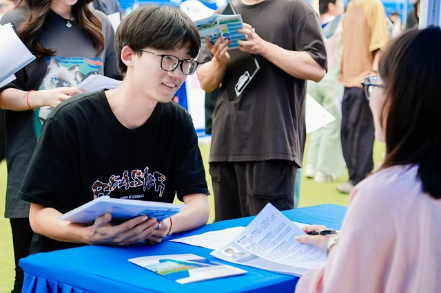 在生涯“規(guī)劃站”,學(xué)校安排校內(nèi)外專家來(lái)到招聘會(huì)現(xiàn)場(chǎng),解答同學(xué)們有關(guān)求職擇業(yè)、國(guó)內(nèi)外升學(xué)、考公考編、自主創(chuàng)業(yè)、征兵入伍等生涯規(guī)劃疑問(wèn),現(xiàn)場(chǎng)還為學(xué)生提供法律援助等服務(wù)!霸谇舐氝^(guò)程中,我發(fā)現(xiàn)用人單位關(guān)注的不僅僅是我的專業(yè)知識(shí)儲(chǔ)備,更多的還會(huì)關(guān)注到在學(xué)校期間的科技競(jìng)賽、實(shí)習(xí)實(shí)踐等經(jīng)歷,所以在大學(xué)期間充分探索和提升自我綜合素質(zhì)很重要!毙畔⒐こ虒W(xué)院通信工程專業(yè)2025屆本科生劉晟向校外專家咨詢了求職經(jīng)驗(yàn)后感受頗深。