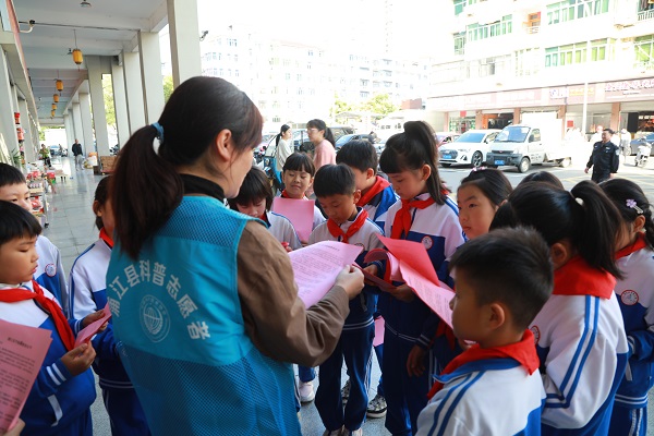 為廣泛宣傳生態(tài)文明理念,倡導(dǎo)簡(jiǎn)約適度,綠色低碳的生活方式,努力構(gòu)建生態(tài)與文明同行,建設(shè)人與自然和諧共生的現(xiàn)代化,11月3日,浦江縣科協(xié)、浦江縣市場(chǎng)監(jiān)管局、金華市生態(tài)環(huán)境局浦江分局共同開(kāi)展“生活減塑,綠色加速”科普實(shí)踐主題活動(dòng),來(lái)自浦江縣實(shí)驗(yàn)小學(xué)、平安中小的30余位志愿者參與活動(dòng)。
