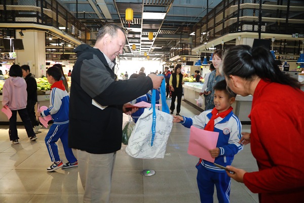 “叔叔,雖然一次性塑料制品極大地方便了我們的日常生活,但不規(guī)范的使用塑料制品卻會(huì)給我們的環(huán)境帶來(lái)很大的傷害。請(qǐng)減少使用一次性塑料制品,謝謝!彪S后,志愿者們分組深入南門(mén)菜市場(chǎng)及周邊商戶(hù)。他們手持宣傳單,化身宣傳大使,向商戶(hù)、過(guò)路群眾宣傳減塑行動(dòng)相關(guān)知識(shí),倡導(dǎo)綠色生活理念。他們用一個(gè)個(gè)鮮活的案例和生活中的小舉措,讓市民們深刻了解“減塑”理念,真切地認(rèn)識(shí)到“減塑”的意義,激發(fā)了市民對(duì)“減塑行動(dòng)”的高度熱情和強(qiáng)烈責(zé)任感;顒(dòng)共發(fā)放倡議書(shū)300余份,環(huán)保袋100余只。
