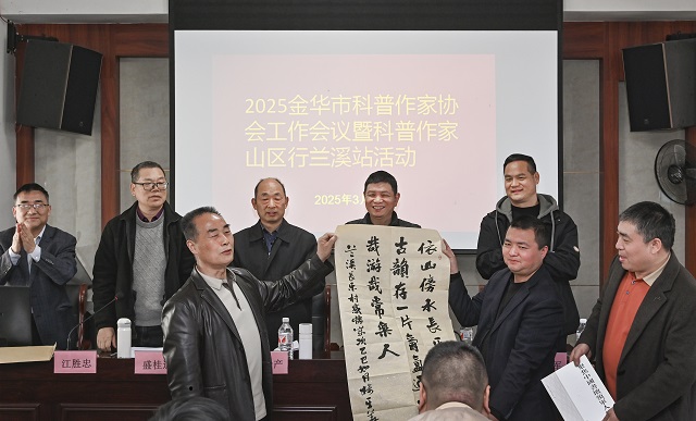 現(xiàn)場(chǎng),授予長(zhǎng)樂景區(qū)為“金華市科普作家協(xié)會(huì)科學(xué)文化交流基地”,重點(diǎn)展開民俗人文科普創(chuàng)作。樓其華、陳林方兩位科普書法名家向長(zhǎng)樂古村贈(zèng)送書法作品。