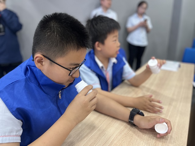 如果說陳列室是時空交織的回響,科普課堂則是一場沉浸式的探香體驗。當(dāng)科技輔導(dǎo)員拋出“聞香祛病是傳說還是科學(xué)”的疑問時,同學(xué)們的好奇心瞬間被點(diǎn)燃。兩場“嗅覺實(shí)驗”更是課堂氛圍推向高潮。